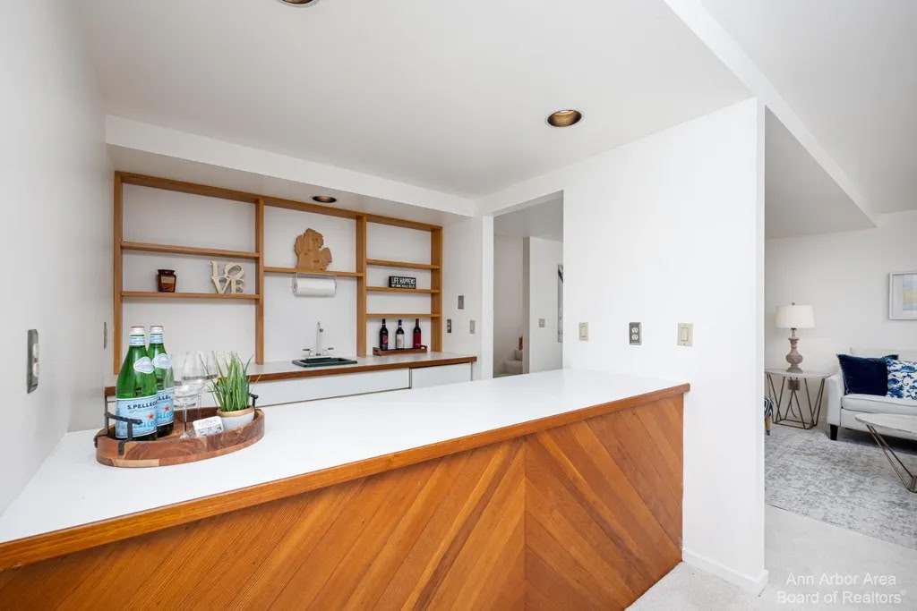 We preserved the cedar board front of the cabinets, facing the common area. That wood is the same as the ceiling in our upper level great room. It’s a nice architectural feature that fits the home and offers some continuity as we continue to upgrade the house.